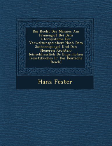 This book Das Recht Des Mannes Am Frauengut Bei Dem G Tersysteme Der Verwaltungseinheit Nach Dem Sachsenspiegel Und Den Neueren Rechten: (Einschliesslich de B R PDF Online is available in various formats like PDF, Kindle, ePub, Ebook, Mobi and many more.